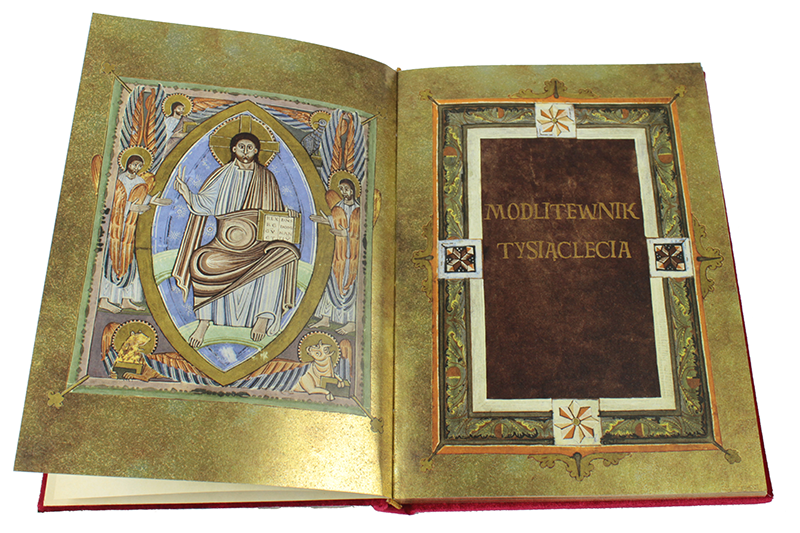 Modlitewnik Tysiąclecia, posiada podobnie jak Złota Biblia Papieska ręcznie wykonaną oprawę jubilerską. Na awersie znajduje się najbardziej czczony i rozpoznawalny symbol chrześcijaństwa w Polsce, cudowny obraz Matki Bożej Częstochowskiej, inkrustowany 24-karatowym złotem oraz ozdobiony 63 kamieniami jubilerskimi. W oprawie umieszczono: 8 turkusów, 15 malachitów oraz 40 kryształów Swarovskiego osadzonych w koronie Królowej Polski.